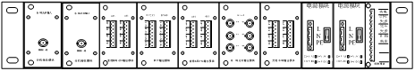 每臺機箱后面板配有2塊輸入模塊,2塊電源模塊,5塊輸出模塊和1個告警模塊;